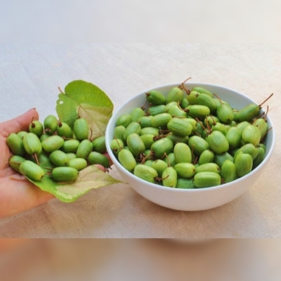 Плоды актинидии имеют овальную форму и размер 2-3 см. Они имеют гладкую поверхность и тонкий слой воска на кожуре. Плоды содержат большое количество витамина C и других полезных элементов.