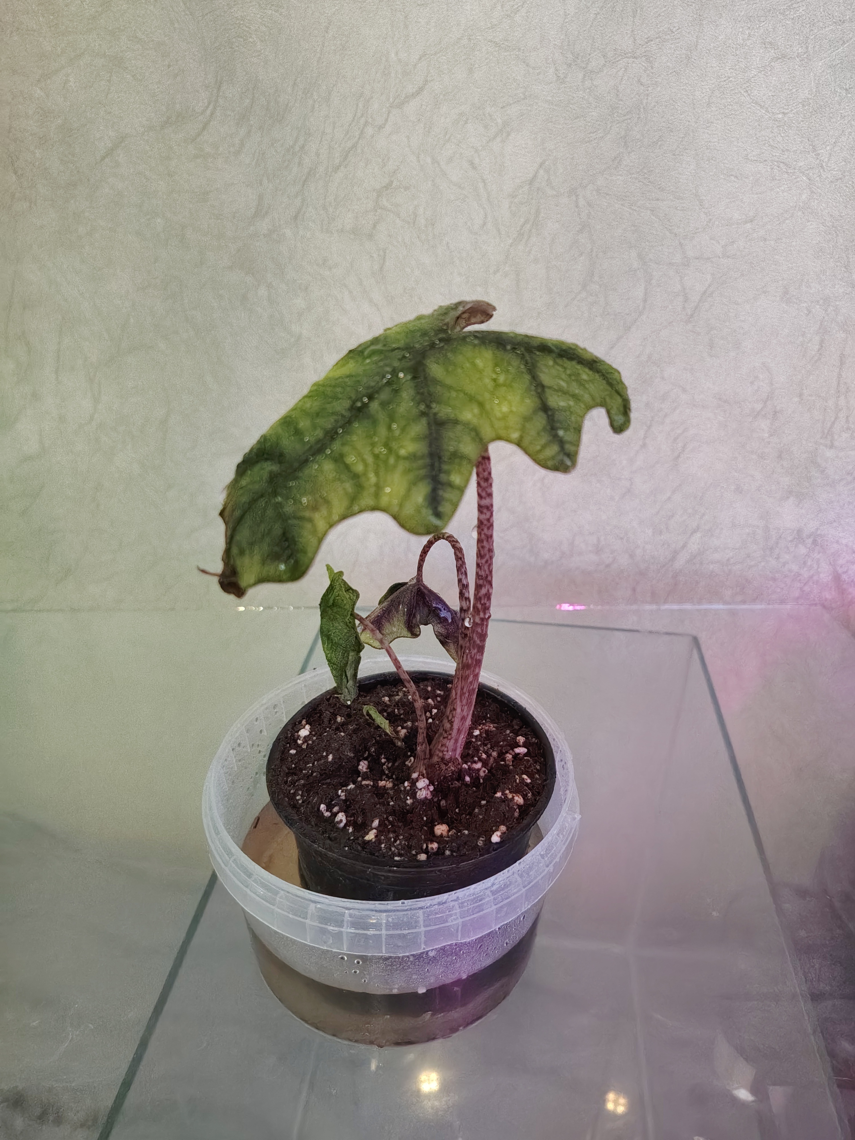 Высокая влажность – ключ к успеху при выращивании алоказии Жаклин. Растение нужно опрыскивать несколько раз в день или использовать увлажнитель воздуха.