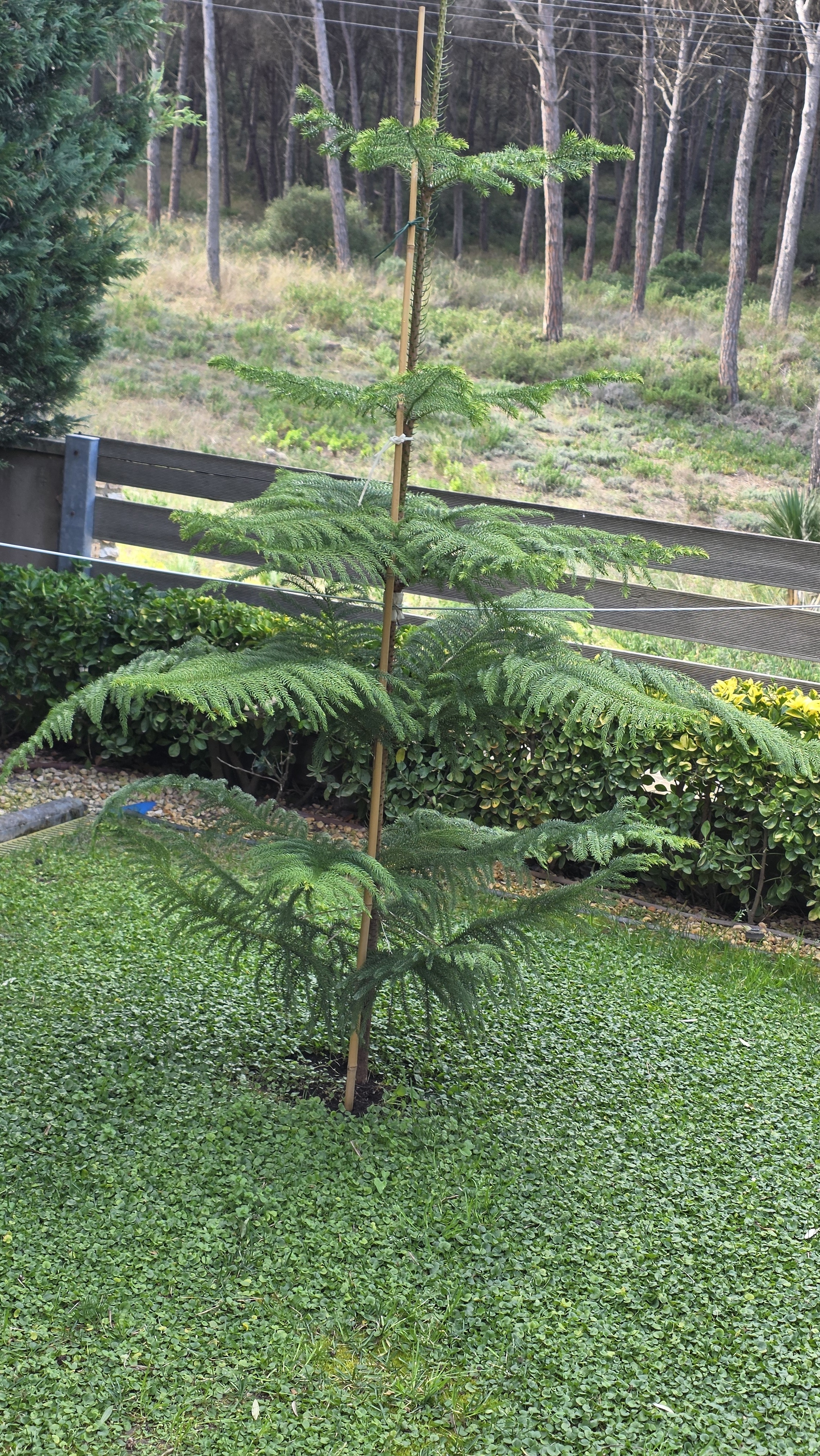 - Араукария хетерофилла (лат. Araucaria heterophylla) является уроженкой Южной Америки и отлично растет в помещениях. Дерево не выносит воздействия прямых ультрафиолетовых лучей и требует создания затенённого места. В зимние месяцы деревце должно пребывать в прохладной комнате. Растение требует хорошего увлажнения и не выносит высыхания земляного кома. Поливать его следует только мягкой водой, так как жёсткая значительно замедляет рост растения.