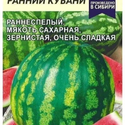 Арбуз Ранний Кубани — это раннеспелый сорт, который был допущен к использованию в 1997 году и включен в Госреестр по Северо-Кавказскому региону. Сорт отличается высокой урожайностью и устойчивостью к различным заболеваниям, что делает его популярным среди садоводов и фермеров. Период от полных всходов до съемной спелости составляет всего 75-87 дней, что на 2-3 дня меньше, чем у стандартного сорта Роза Юго-Востока. Это позволяет получать первый урожай арбузов значительно раньше.
