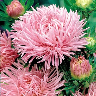 Шиншилла – это однолетний сорт астр, который отличается обильным цветением и оригинальной формой соцветий. Кусты данного сорта имеют букетную форму и достигают высоты до 75 см. Соцветия махровые, размером до 12 см, светло-розового цвета.