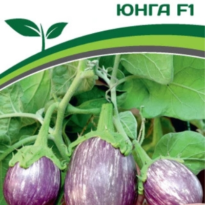 Кусты баклажана Юнга имеют компактную форму с полураскидистой структурой. Высота растения составляет около 75 см, что позволяет ему занимать немного места на грядке или в теплице. Плоды этого сорта обладают овально-грушевидной формой длиной от 5 до 10 см и диаметром от 5 до 7 см. Каждый плод весит примерно 150 г.