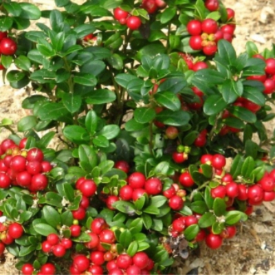 Брусника Файрболлз, также известная как Fireballs или Файр Боллз, представляет собой вечнозеленый почвопокровный кустарничек, который отличается низкорослым типом роста. Высота этого растения составляет всего 25-30 см, а диаметр может достигать 150 см. Крона у брусники компактная и округлая, что делает ее привлекательной для использования в ландшафтном дизайне. Листья имеют яйцевидно-округлую форму и темно-зеленый цвет с характерным блеском. Это растение цветет в средние сроки: период цветения приходится на весну и лето, а именно на май и июнь. Цветы колокольчатой формы небольшого размера (примерно 2 см) окрашены в белый цвет с нежным розовым оттенком и собраны в кистевидные соцветия на верхушках прошлогодних побегов.