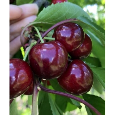 Крупные (6,4 г) плоскоокруглые плоды имеют четко выраженный брюшной шов. Окрас интенсивный темно-красный, в период физиологической спелости преходящий в тона, близкие к черной гамме. Крупная (0,4 г) косточка хорошо отделяется от мякоти, кожица устойчива к растрескиванию, за исключением перенасыщенности влагой.