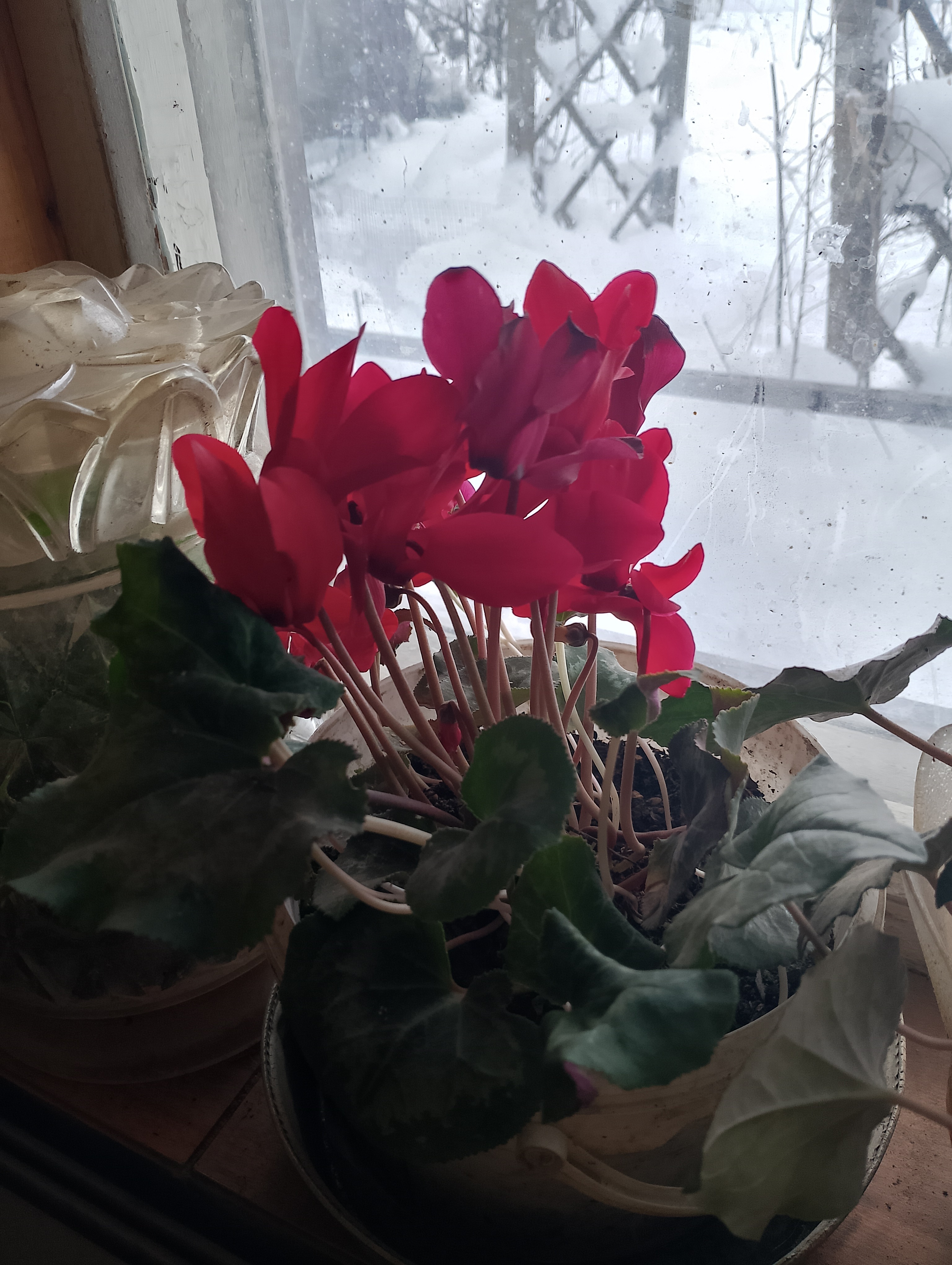 Преимущества: Цикламен – одно из немногих комнатных растений, которые цветут зимой. Яркие цветы на фоне снега за окном завораживающее по красоте зрелище.