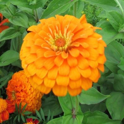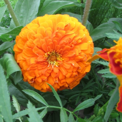 Цинния Оранжевый король – цветок, который относится к группе георгиноцветковых. Куст характеризуется как крепкий, мощный и высокорослый, максимальная высота не превышает 90 сантиметров. Цветоносы прочные, главный стебель прямостоячий.