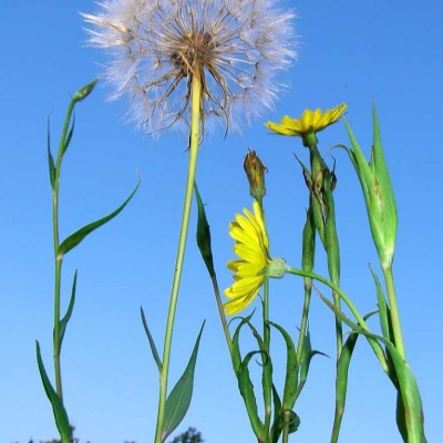 - Луговой – двулетнее растение, которое часто называют молочником, так как его млечный сок имеет лекарственные свойства. Корневище и стебли употребляются в пищу. Достигает высоты 35-125 см, имеет пряморазветвлённые розовые или фиолетовые стебли. Листва сидячая, ланцетной формы, с цельными краями, без зубцов и выемок. Цветки располагаются на вершине стебля. Период цветения – с мая по октябрь. Корзинки большие, после обеда закрываются. Диаметр цветков до 3 см, окрас бледно-жёлтый.