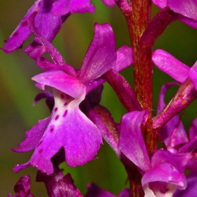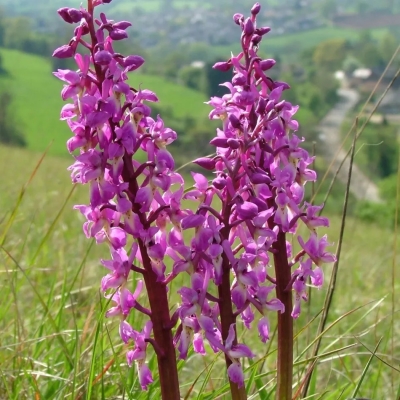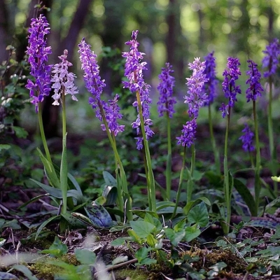 Цветущие ятрышники образуют колосовидные соцветия с мелкими сложными цветками, окрашенными в оттенки от лилово-розовых до темно-вишневых.