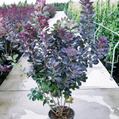 - «Лилла». Этот гибрид — уменьшенная версия сорта Royal Purple, выведенный венгерским селекционером. Она уже снискала множество наград на международных выставках. Весенняя листва имеет винно-красный оттенок, летняя – насыщенно-фиолетовая, осенью она золотая, оранжевая, алая. Взрослый куст достигает не более 1,2 м в высоту и в диаметре, крона округлая, в период цветения обильно украшена розовыми метелками.