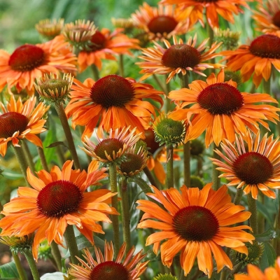 Поскольку эхинацея великолепно вписывается практически в любой сад, она – любимое растение ландшафтных дизайнеров. Отлично смотрится с почвопокровными растениями и на зеленых газонах. Прекрасно сочетается с цветущими с июля до сентября астрами, флоксами, рудбекией, монардой, гейхерами. Эхинацея Оранж Пэшн украсит любой участок сада под палящим солнцем.