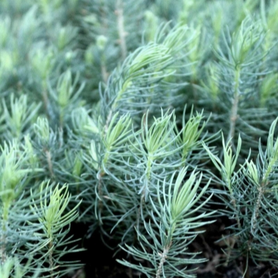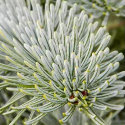 Ветки растут под прямым углом по направлению от ствола. Хвоя короткая, но густая, а иголки имеют немного серповидную форму. Длина – от 1,0 до 1,2 сантиметра. Толщина – 1 миллиметр. Структура – колючая. Хвоя пушистая, окрас варьируется от зеленого, до серо-голубого. Ее цвет остается неизменным даже под влиянием солнечных лучей. Сорт – декоративный. Корневая система – поверхностная.