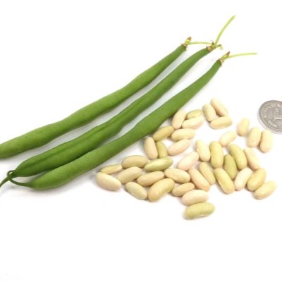 Семена фасоли Вердигон мелкие, почковидной формы, белого цвета, со слабым жилкованием. Масса 1000 семян составляет примерно 235 г, что говорит о высоком качестве семенного материала данного сорта.