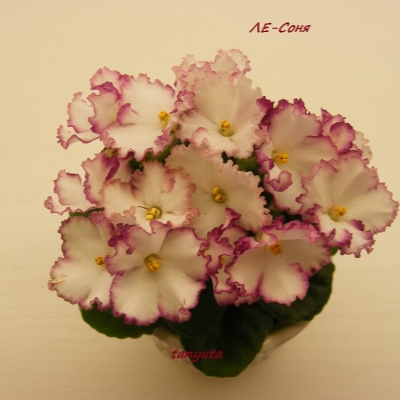 У ЛЕ-Соня ровная розетка, сама фиалка относится к типу полумини, поэтому не вырастает большой.