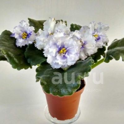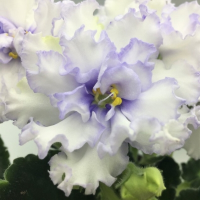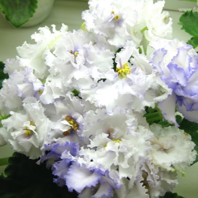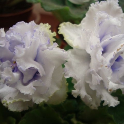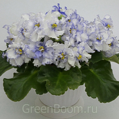 Фиалка с таинственным названием РС-Призрак получила свое название за счет необычного сочетания белого и синего оттенков. Высокие декоративные качества обеспечены пышными и выразительными цветами, которые гармонируют с сочными зелеными листьями.