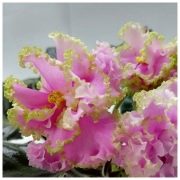 • Окраска цветка: светло розовая; нижние края лепестков украшены розово-лиловой сеточкой и прерывистым зелёным рюшем