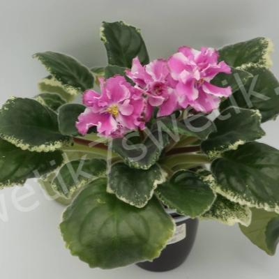 Фиалка ЛЕ-Клюквенное суфле — это новый сорт, разработанный автором Лебецкой Еленой в 2020 году. Розетка этого сорта является выставочной, пестрые листья делают этот сорт ещё более привлекательным.