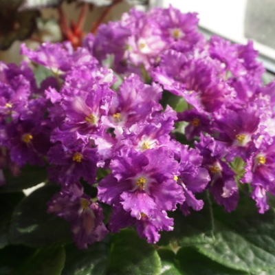 Основной плюс этого растения – крупные цветы очень насыщенного, приятного цвета. У них махровые кончики, что делает их еще краше. У цветков длинные черешки, за счет которых они возвышаются над аккуратными однотонными листьями. Надо сказать, что листочки на фоне цветов кажутся небольшими, но это ничуть не портит растение. Яркая же сердцевинка оживляет цветок, многие цветоводы уверяют – без нее бы он выглядел мрачнее.