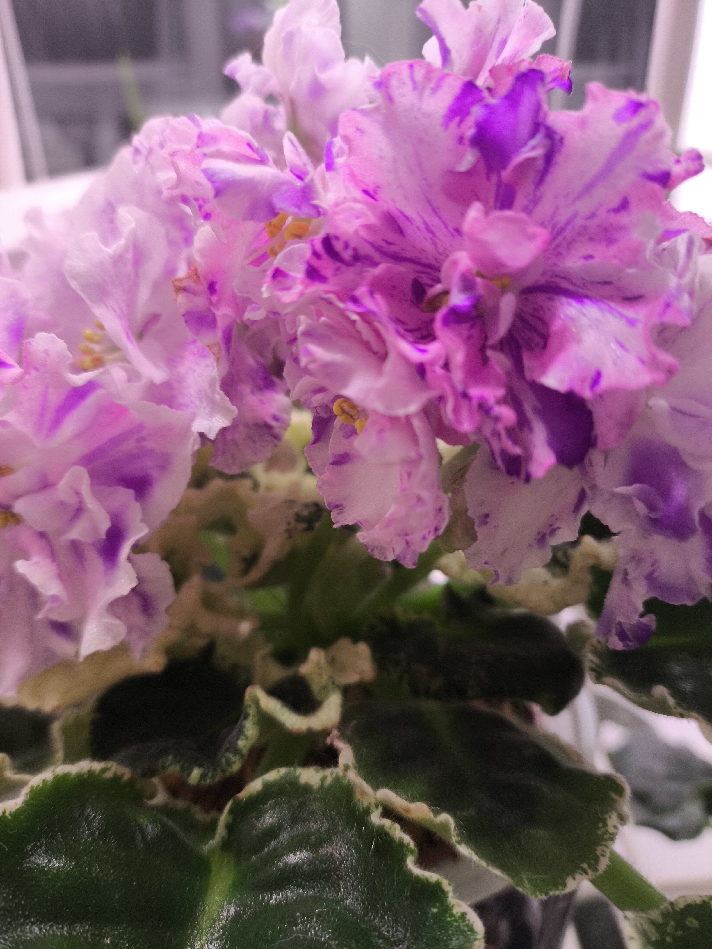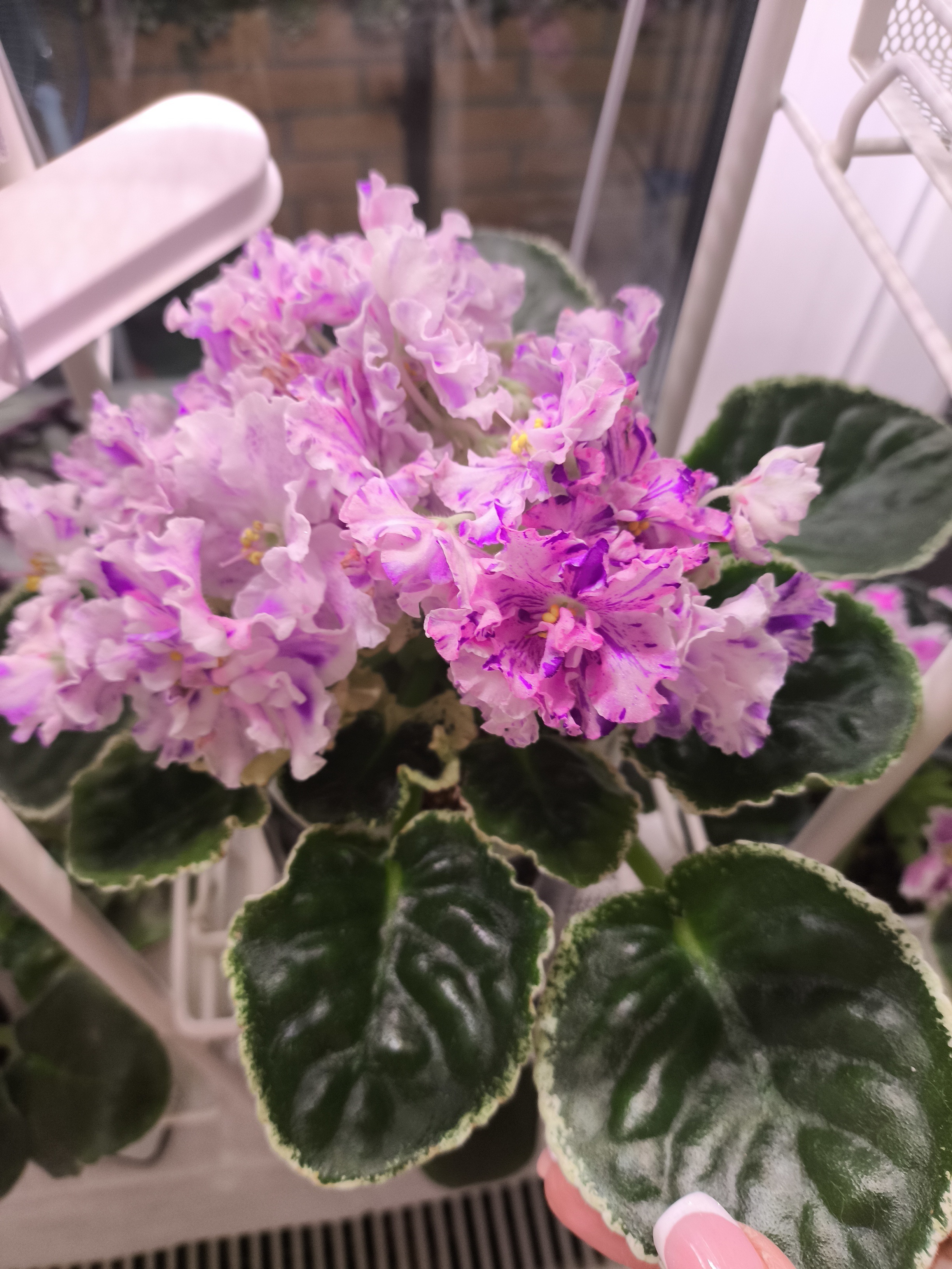 Преимущества: Красивая, крупная фиалка Ле – Сюрприз зимы. Моя полностью соответствует описанию сорта. Листья пёстрые, очень крупные, цветы обильные, шапочное цветение, яркие фэнтези синего цвета по розовому фону. Полу махровые очень крупные цветы. Фиалка цвета весь декабрь, январь отдыхала, а в конце февраля опять расцвела. Второе цветение крупнее и рюшастее цветы. Крупный стандарт и ещё весной начала пасынки выдавать, вот такая красавица.