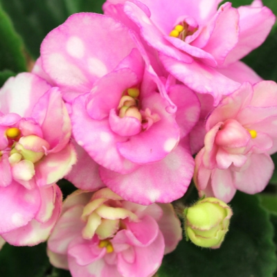 Фиалка обычно начинает цвести весной или летом. Цветение продолжается до конца осени или начала зимы. В это время на розетке появляются красивые бело-розовые цветки с зеленой каймой.
