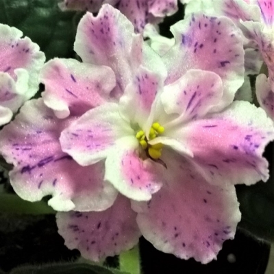 - Окраска цветка : белые цветы с розовым пятном на каждом лепестке и синим фентази по розовому фону
