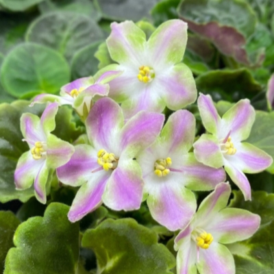 Сенполия RIV-Амнезия — это уникальный сорт комнатной фиалки, выведенный в 2024 году автором И. Растегаевой. Этот сорт привлекает внимание не только своими яркими цветами, но и аккуратной формой розетки. Розетка у RIV-Амнезия ровная и симметричная, что делает её особенно привлекательной для любителей комнатных растений. Она отлично раскладывается и формируется, что позволяет растению выглядеть ухоженно и эстетично.