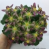 Каждый отдельный цветок имеет средний размер и звёздчатую форму; их окрас варьируется от нежно-розового до насыщенного фиолетового с зелеными акцентами по центру лепестков — это создает удивительный контраст между различными оттенками растения.