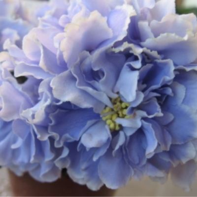 Лепестки имеют волнистый край, что добавляет дополнительный шарм этому сорту фиалки. Полумахровая или махровая форма цветков также привлекает внимание цветоводов.
