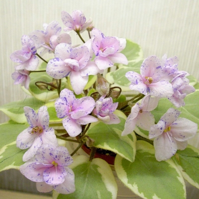 Цветки имеют розовую основную окраску с крапом синего фэнтези. Насыщенность цвета при этом бледная, что создает нежное и мягкое впечатление.