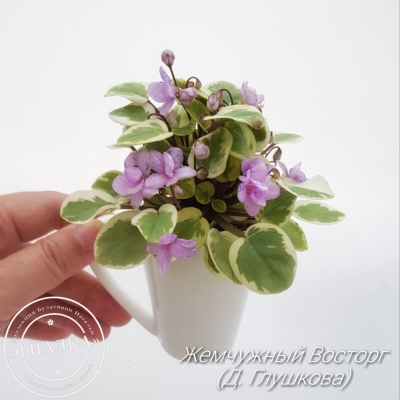 Фиалка Жемчужный Восторг – это уникальный сорт, созданный Глушаковой Дарьей. Это листовой спорт от Rob’s Boolaroo. Сорт имеет трейлерную форму розетки и является миниатюрным по размерам.