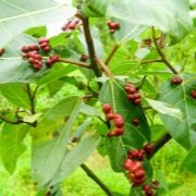 Цвет листьев: молодые листья глянцевые, бордовые. По мере взросления лист меняет окраску. Сначала бордовые листья бледнеют и становятся коричневыми, а затем лист зеленеет и приобретает бронзовый отлив. Изнанка листа красная с перламутровым отблеском