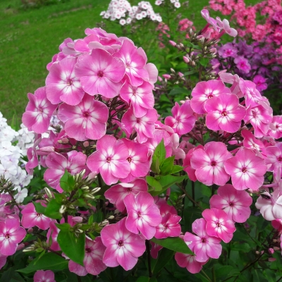 Очень эффектно крупные кусты с красивыми соцветиями выглядят на фоне сочно-зеленых газонов, а также в ансамбле с другими цветочными культурами – колокольчиками, флоксами других сортов, гвоздиками, аквилегиями. Стоит отметить также, что флоксы прекрасны в срезке, в праздничных флористических композициях.