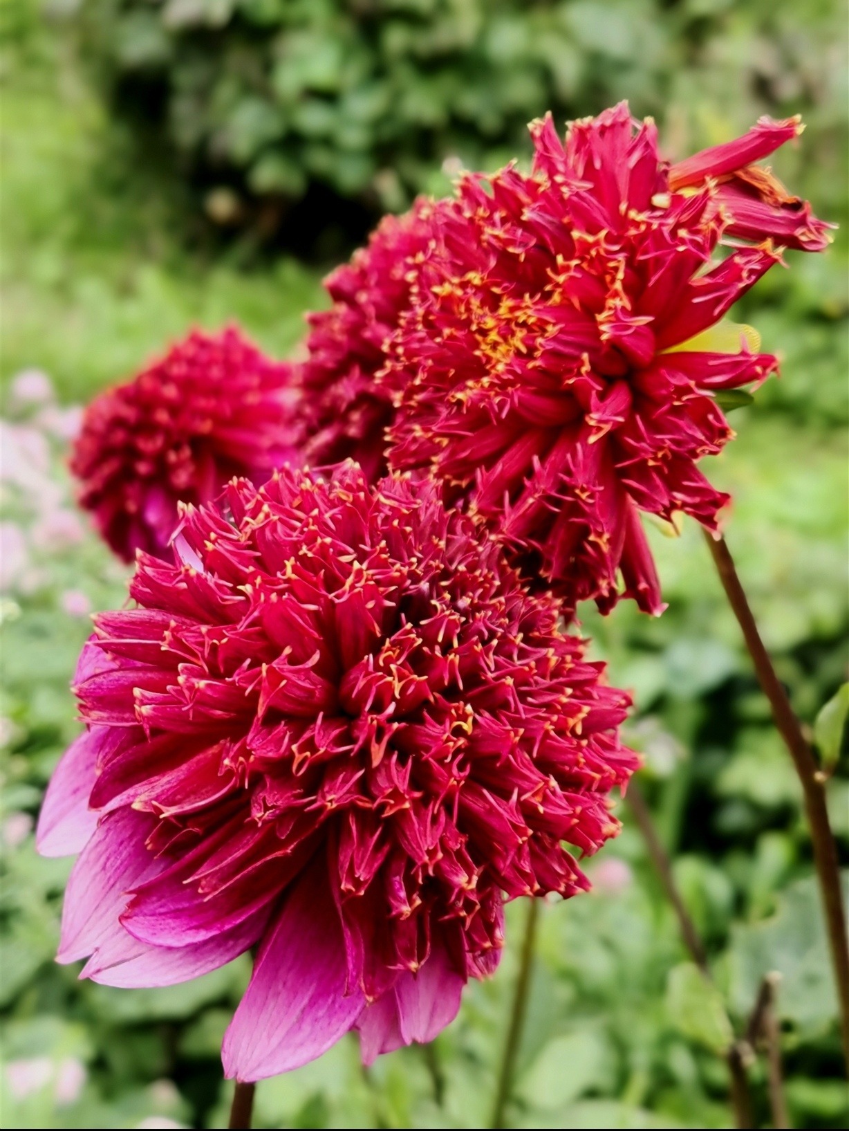 - Окраска : цветки с плотным пурпурно-бордовым центром и "юбкой" из ярко-розовых лепестков