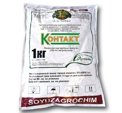Основным компонентом гербицида Контакт является метрибузин, содержание которого составляет 700 г/кг. Метрибузин относится к химическому классу Триазинонов.