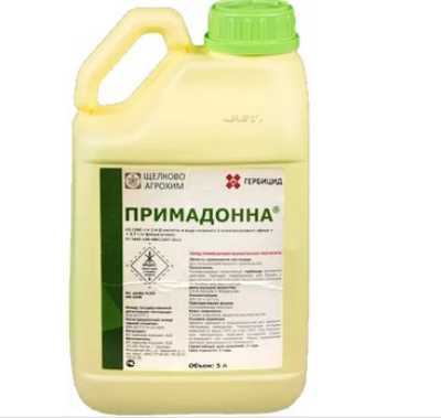 Примадонна, СЭ – селективный препарат отечественного производства, выпускается ЗАО «Щёлково Агрохим». Является послевсходовым гербицидом с системным действием. Предназначен для уничтожения сорных вредных растений, как двудольных однолетних, так и многолеток на посадках зернобобовых, а также кукурузы.