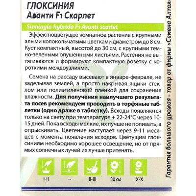 Сроки посадки глоксинии Аванти Скарлет приходятся на период с февраля по март, чтобы получить цветение в этом году. Однако можно сеять до июня. Почва для выращивания должна быть легкой и питательной, с добавлением древесного угля.