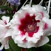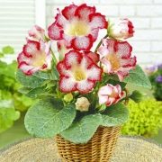 Период цветения глоксинии начинается в мае и продолжается до сентября. Цветы этого сорта простые, но очень крупные и пышные. На одном растении может быть от 10 до 30 цветов. Чтобы продлить период цветения, необходимо удалять увядшие цветки и старые листья.