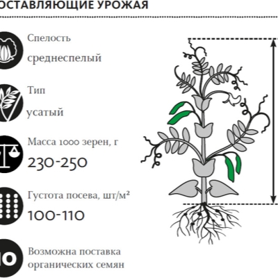 Высокое содержание белка (19,2-24,9%) делает этот сорт особенно ценным для людей, следящих за своим питанием или стремящихся увеличить долю растительного белка в рационе. Благодаря своей универсальности горох может быть использован как гарнир или же как самостоятельное блюдо.