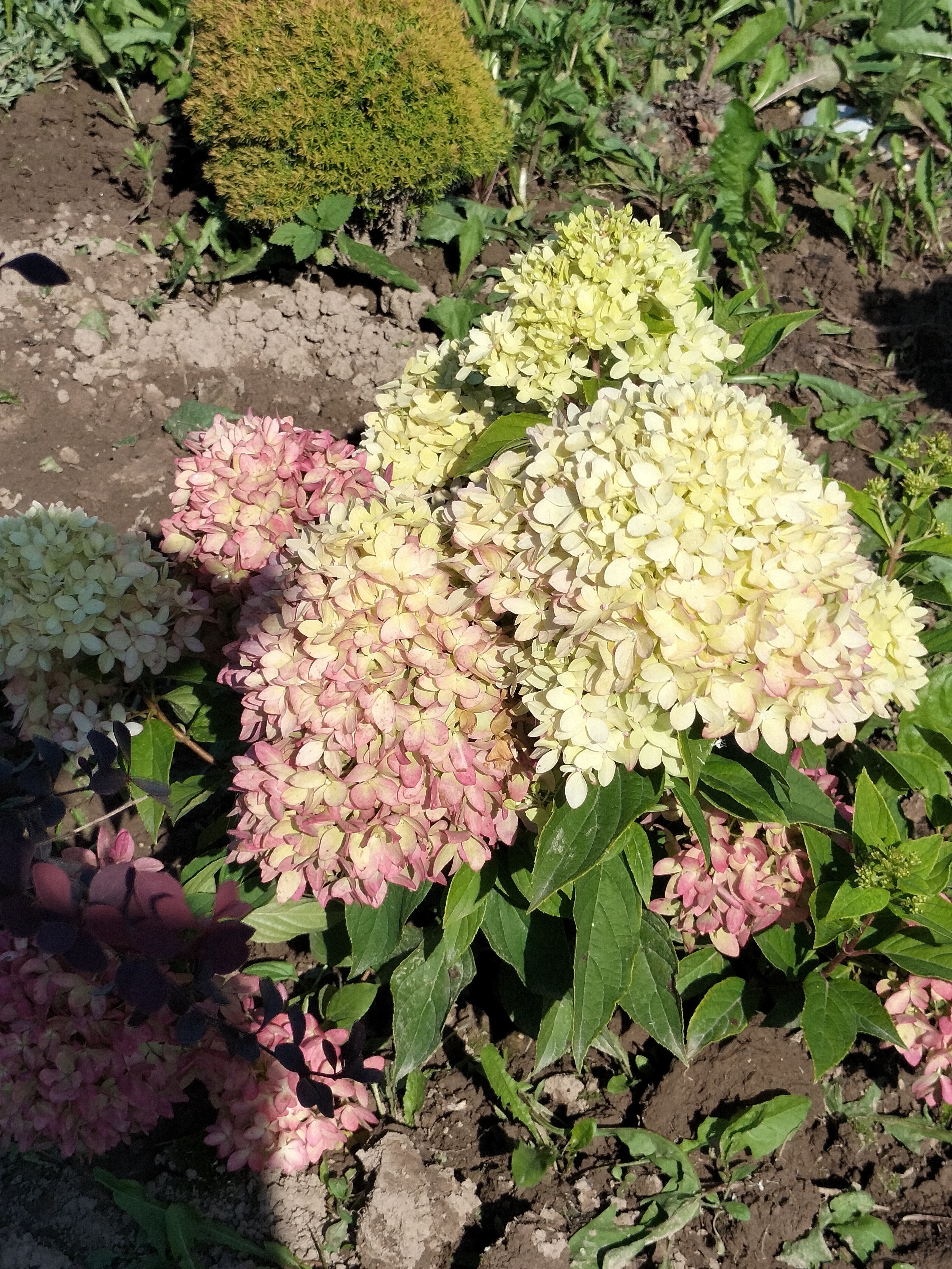 Комментарий: В прошлом году купила эту гортензию с корневой 1.7 литра, но ком не был весь оплетен, была без цветов и совсем маленькая. За сезон этого года подросла, распушилась, дала много шикарных шапок цветов. Цветы имеют зеленоватый оттенок, потом начинают розоветь.