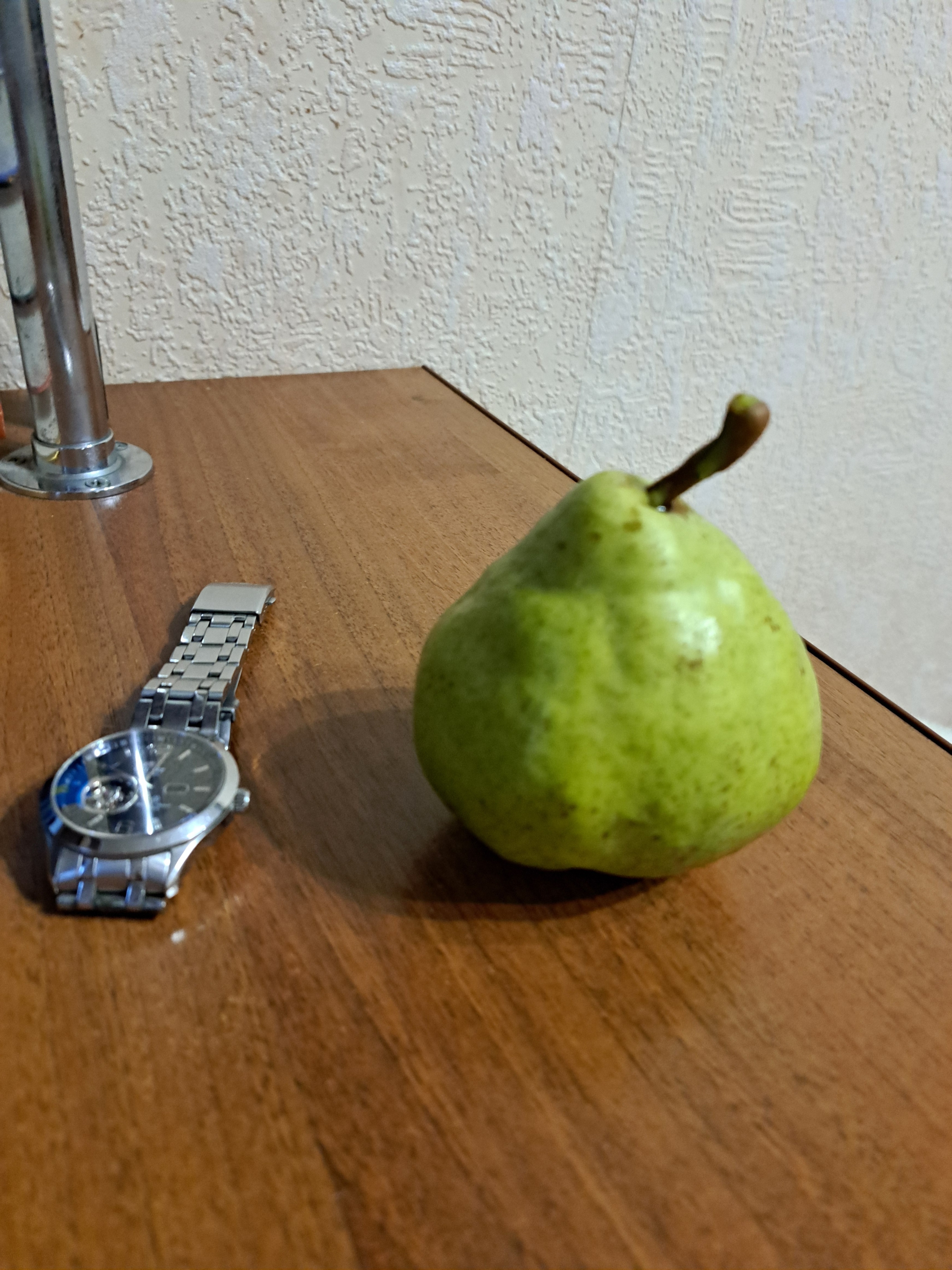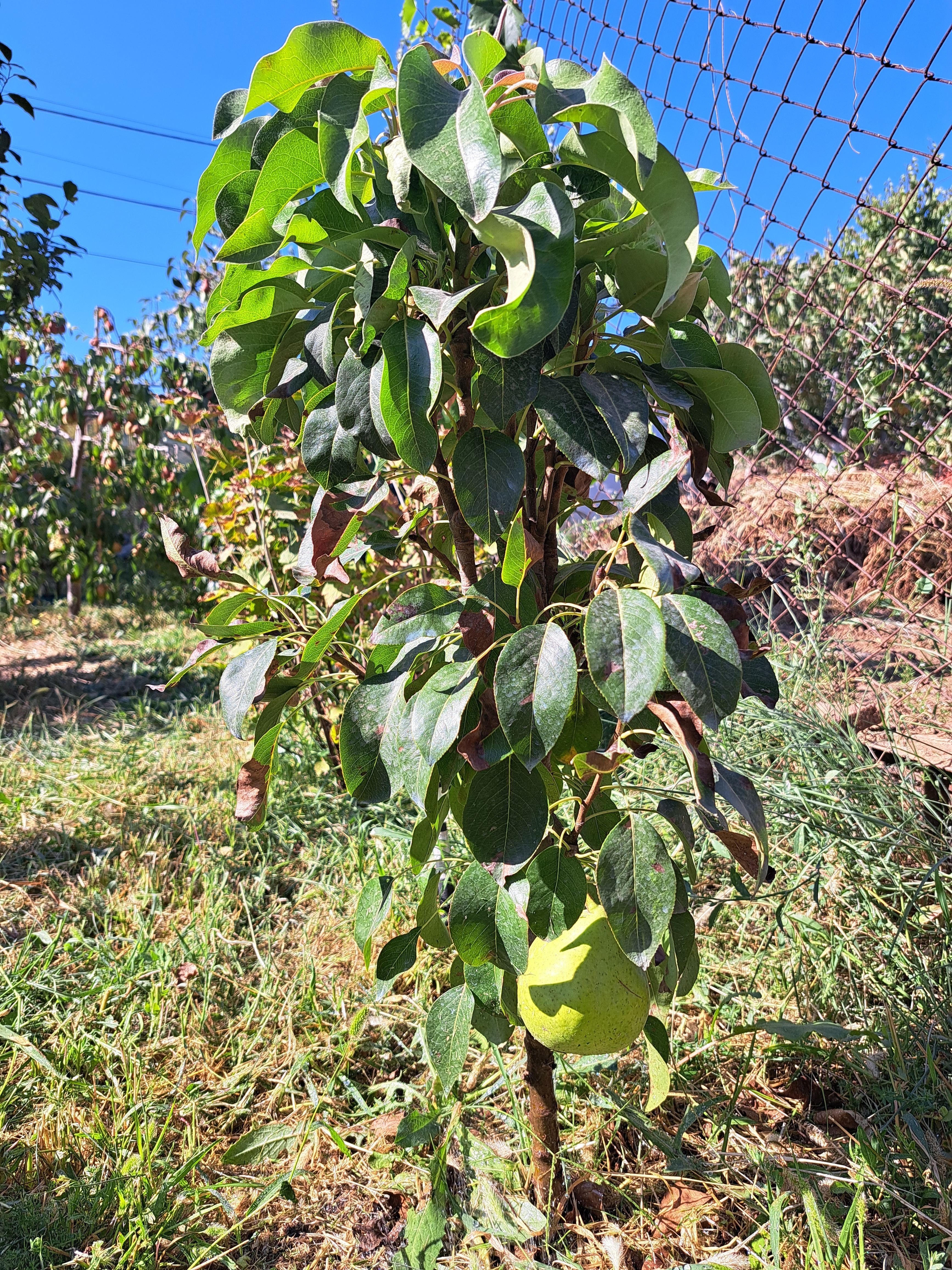 Комментарий: Груши крупного размера. Посадили два дерева, высотой в 30-40 см, спустя год на одном они дали небольшой урожай, 4-5 груш, крупные, весом около 250 гр. Груши вкусные, сочные, плотные, созревают в середине октября. После съёма с дерева, нужно чтобы они еще несколько дней полежали, набрали сладость. Сейчас деревца высотой до метра.