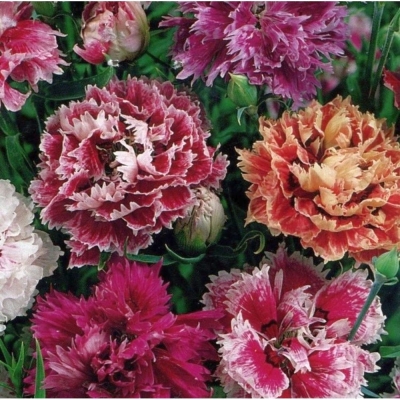 Цветки гвоздики отличаются махровой формой с гофрированными по краю лепестками, что придает им особую декоративность. Окраска цветов варьируется от белого до розового и красного оттенка, позволяя создавать яркие композиции в саду или на балконе. Эта культура является однолетником, что означает, что она завершает свой жизненный цикл за один сезон.
