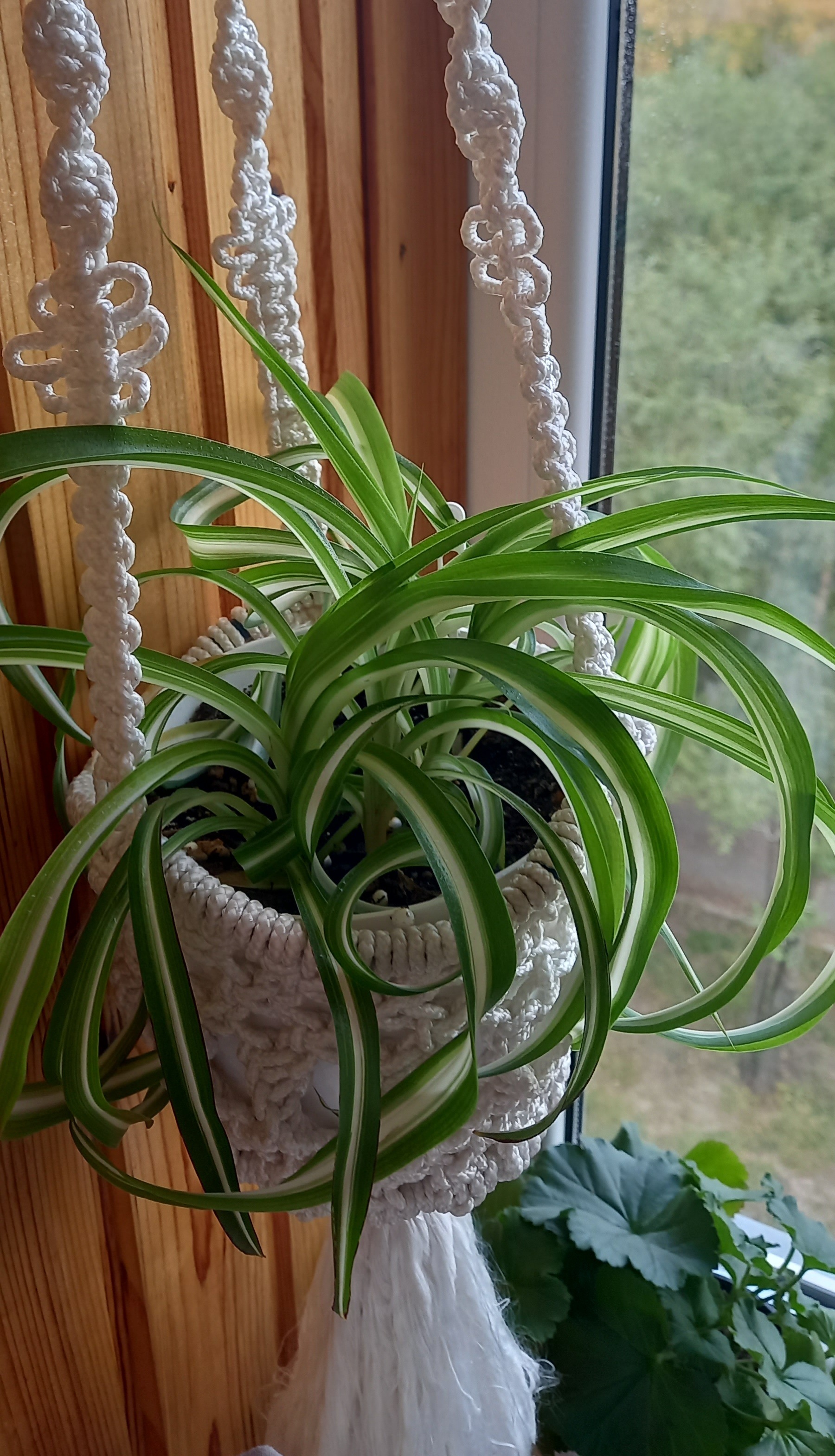 Комментарий: В начале июля приобретала каллизии и традескации. Мне подарили детку хлорофитума Бонни с воздушными корешками. В грунт посадила на следующий день. Всего за пару месяцев превратился в прекрасное растение. Висит в подвесном кашпо на северо-западном застеклённом балконе, света достаточно, а солнца почти нет. Рекомендую начинающим цветоводам. Очень неприхотлив, но при этом сказочно красив! 👍👍👍