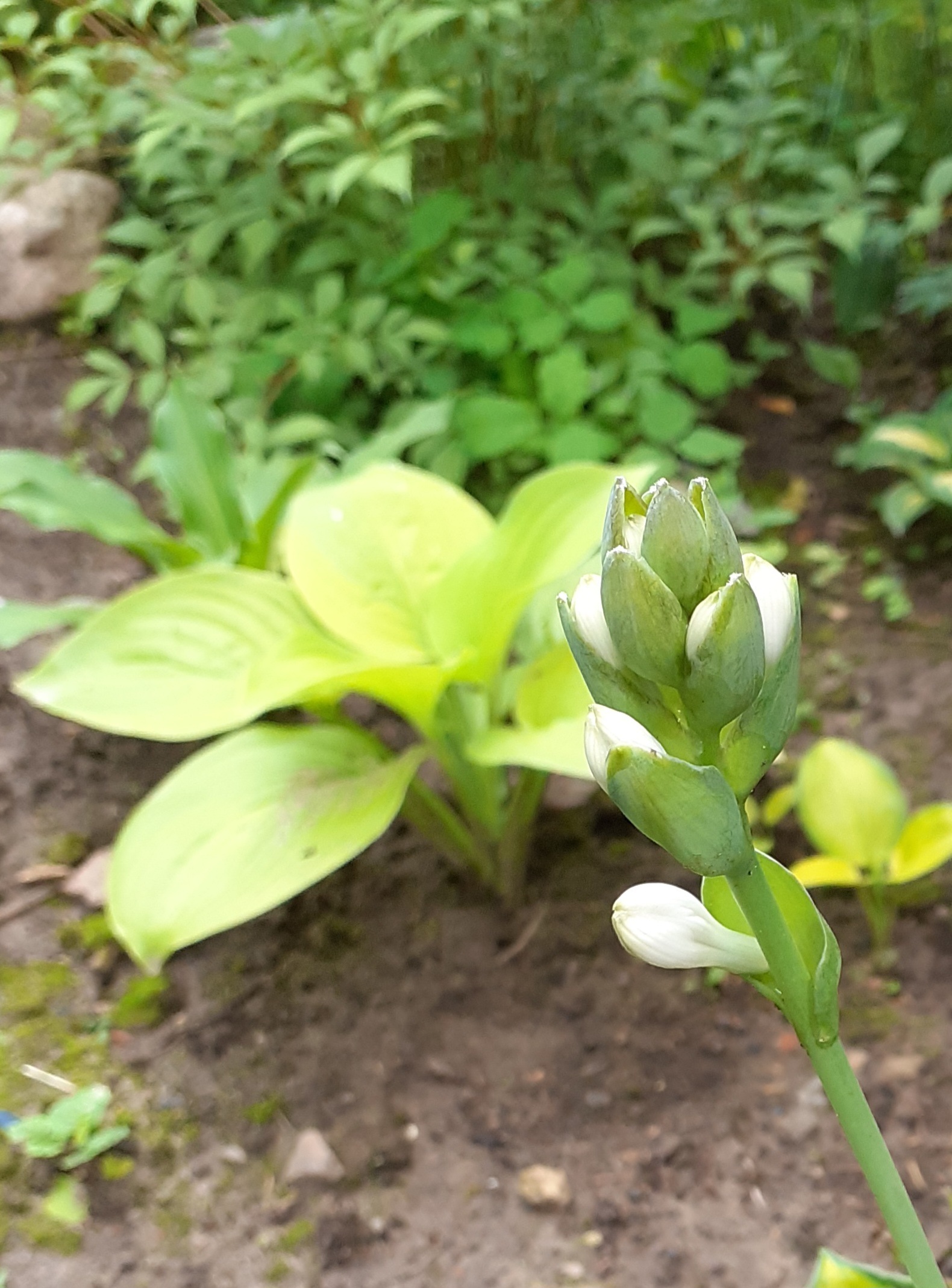 Преимущества: Неприхотливая быстрорастущая хосточка. Разрастается тоже быстро. Посажена в полутени. Кустик воздушный, листья нежного оттенка зелёного яблока. Вроде простая, а выделяется на клумбе
