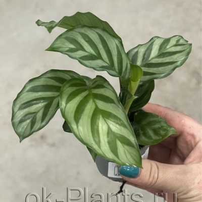 Это пышный и объемный кустик, который достигает высоты 30-50 см. Листья у клатеи большие, слегка вытянутые и овальные. Черешки тонкие и высокие.