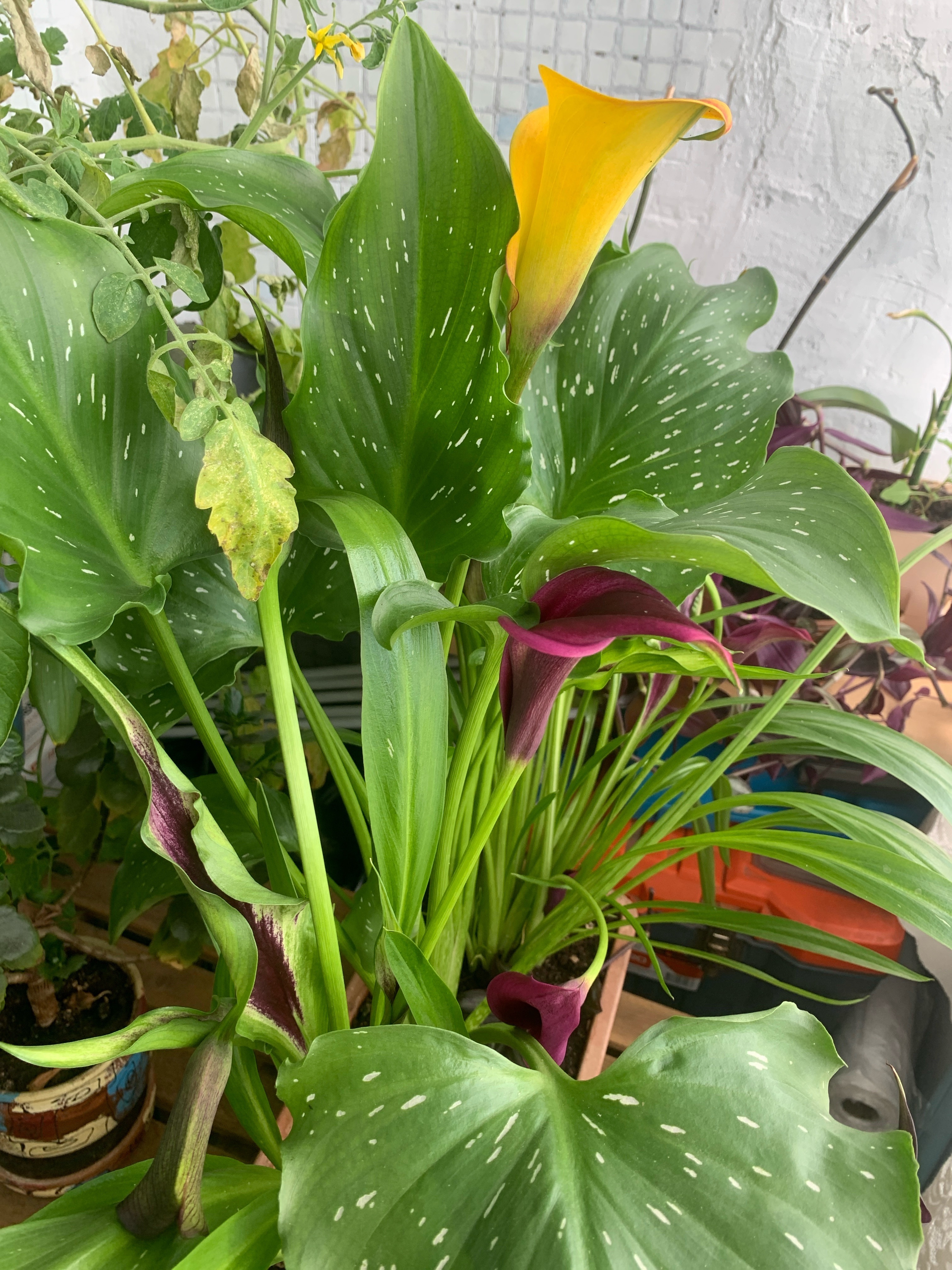 Клубни выкапывают вместе с надземной частью в середине-конце сентября до того, как установятся отрицательные температуры. В открытом грунте каллы не зимуют.