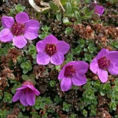 Камнеломка супротивнолистная, или Saxifraga oppositifolia L., представляет собой многолетнее дернистое растение с тонкими корнями. Этот вид отличается почвопокровным характером роста побегов, что делает его идеальным для создания зеленого покрова на различных участках. Листья камнеломки расположены тесно друг к другу на концах побегов и образуют розетки. Они имеют почти эллиптическую форму, мелкие размеры и реснитчатый край, а их окраска варьируется от тёмно-зелёного до более светлых оттенков в зависимости от условий произрастания.