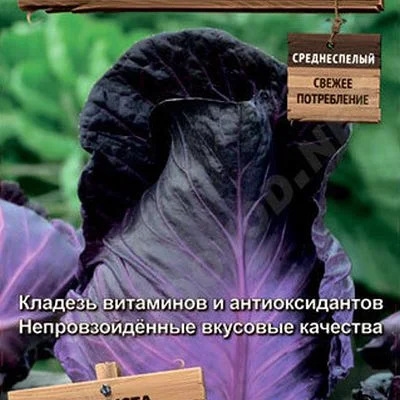 Растение формирует полуприподнятую розетку листьев среднего размера с широкояйцевидной формой. Листья имеют фиолетовую окраску с восковым налетом средней интенсивности. Поверхность листа гладкая или очень слабопузырчатая, а край листа слабоволнистый. Эти характеристики делают растение не только вкусным, но и декоративным элементом огорода.