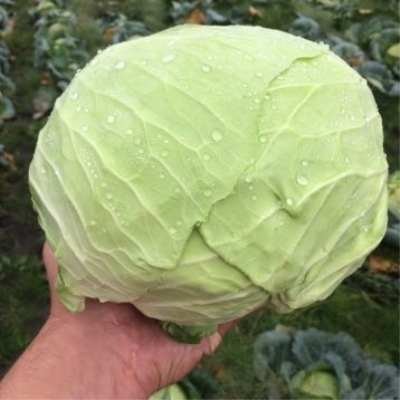 Кочаны округлой формы с массой от 2,0 до 2,6 кг обладают средней длиной наружной кочерыги и короткой внутренней кочерыгой. На разрезе они имеют беловатую окраску, что свидетельствует о высоком содержании питательных веществ внутри плода. Плотность кочана оценивается на уровне 4,2 баллов — это говорит о том, что он достаточно плотный и хорошо сохраняет свою форму во время хранения.