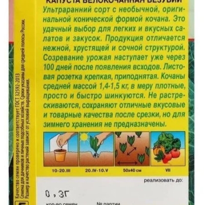 Устойчивость капусты к растрескиванию кочанов очень хорошая, что делает её одним из самых надежных сортов для выращивания. Сроки созревания этого ультрараннего сорта составляют около 100 дней от всходов до технической спелости.