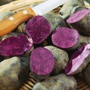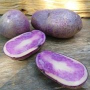 Свое название фиолетовый (сиреневый) картофель получил не просто так — он выделяется действительно фиолетовой мякотью и покрыт кожурой того же цвета. Важным преимуществом таких корнеплодов является то, что из них удается готовить любое обычное блюдо, но оно будет отличаться по расцветке. В Старом Свете долгое время подобную культуру не использовали, однако затем специалисты сумели создать гибриды и сорта. Исходно же сиреневая разновидность появилась в природе и не потребовала никаких генетических изменений.