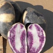 Сразу стоит оговориться, что вкусовые качества у рассматриваемой синей картошки обычные. Зато мякоть обильно насыщена антоцианами. Концентрация крахмала при этом ниже обычной. Корнеплоды рыхлые и рассыпчатые, что весьма ценится кулинарами.
